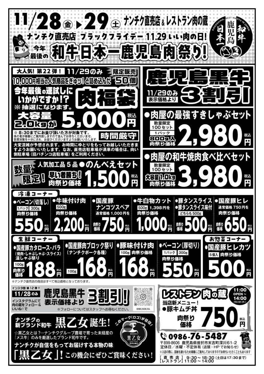 11/28(金)・29(土)ナンチク直売店 「肉の日セール」開催のお知らせ!