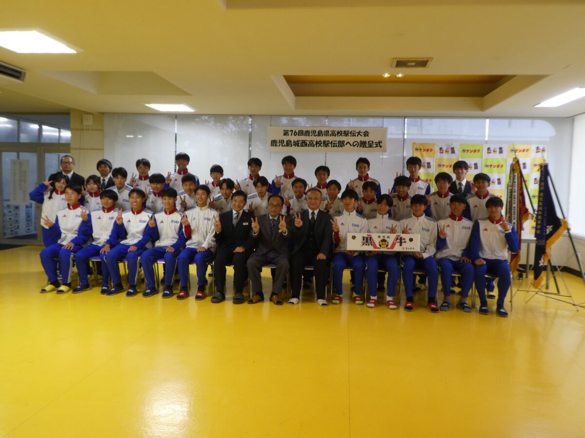 鹿児島城西高校駅伝部の皆さんに黒乙女55を贈呈しました!