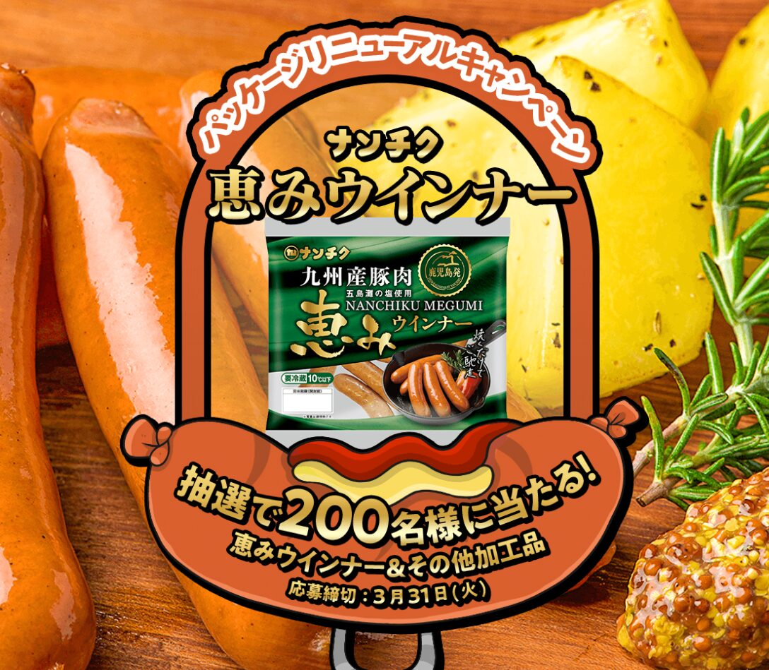 「恵みウインナー」パッケージリニューアルキャンペーン実施中!!3/31(火)まで!!
