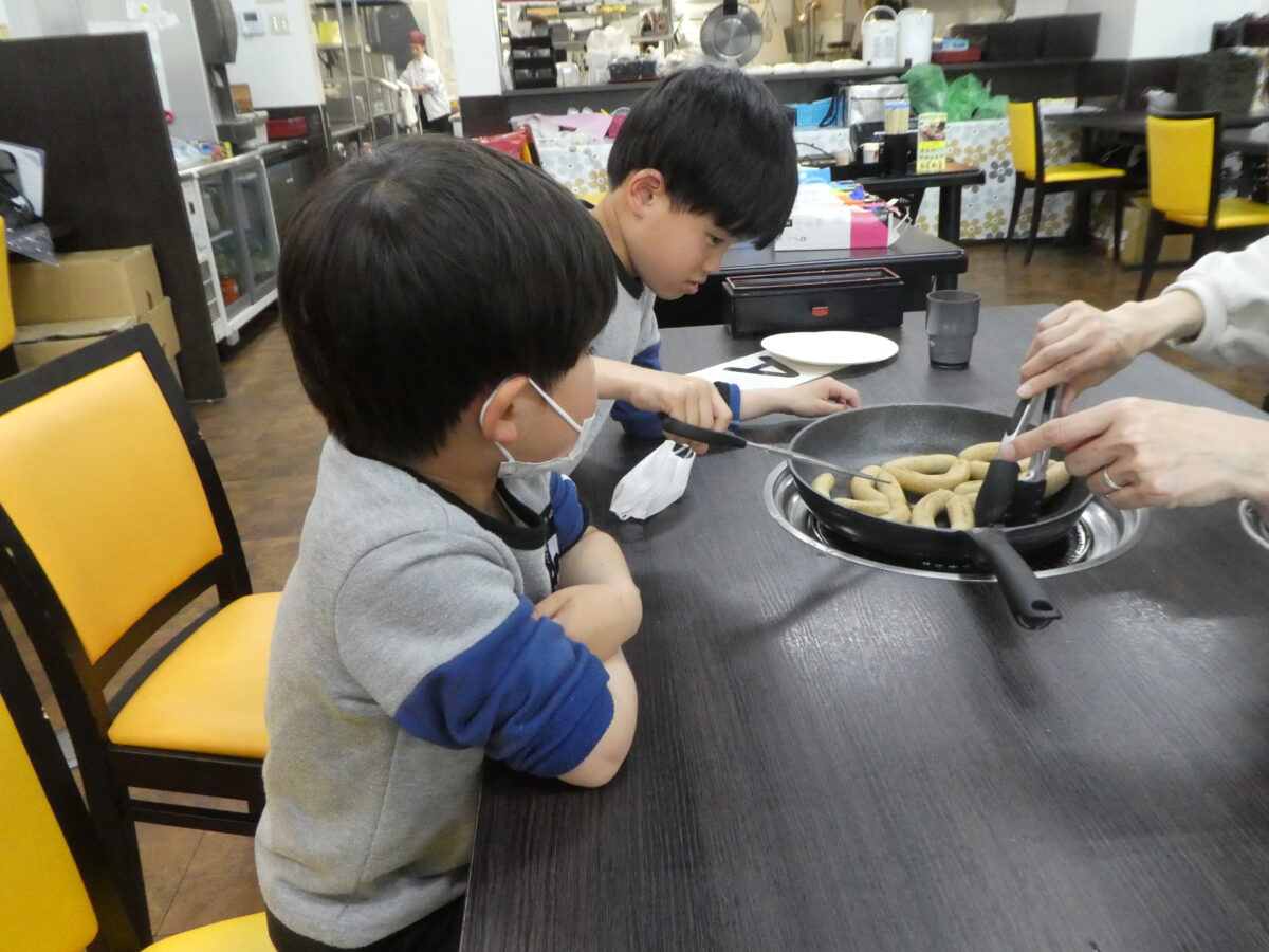 作ったソーセージはその場で蒸し焼きにしました。