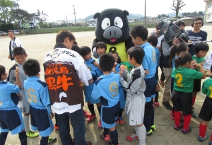 元気いっぱいの子供たちと一緒に黒豚くんも練習に
